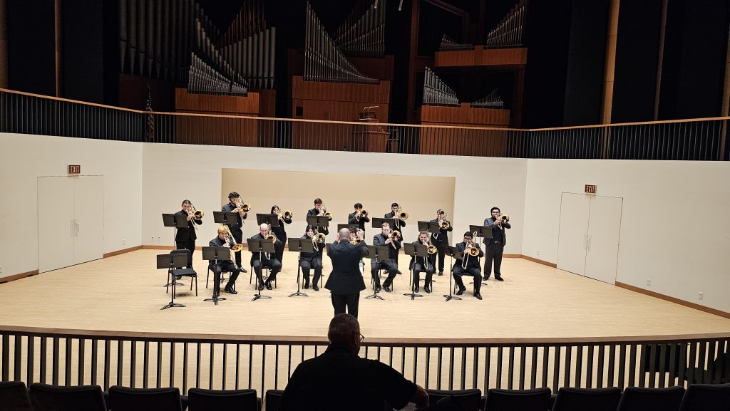 The feature performance was creative, energetic, and inspiring. Andy performed with the Texas Tech Jazz Orchestra. There were many great interactions between Andy and the ensemble, with the concert adorned by numerous amazing solos both by Andy and the Jazz Orchestra Members. Audience Members enjoyed sensational performances by the University of Texas-Rio Grande Valley Trombone Choir and the Lamont Trombone Quartet from the University of Denver. Highlights of the conference included the Big 12 Tenor Trombone Solo Competition, the Big 12 Bass Trombone Solo Competition, an exciting faculty showcase recital, great choir performances and several inspiring clinics and presentations.